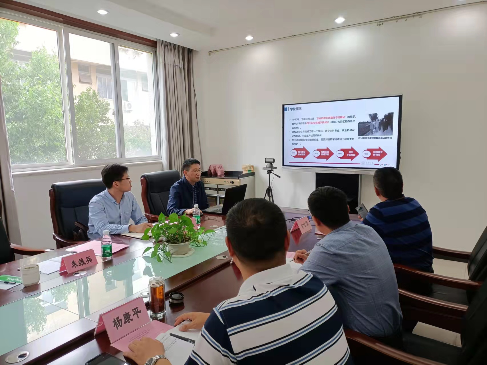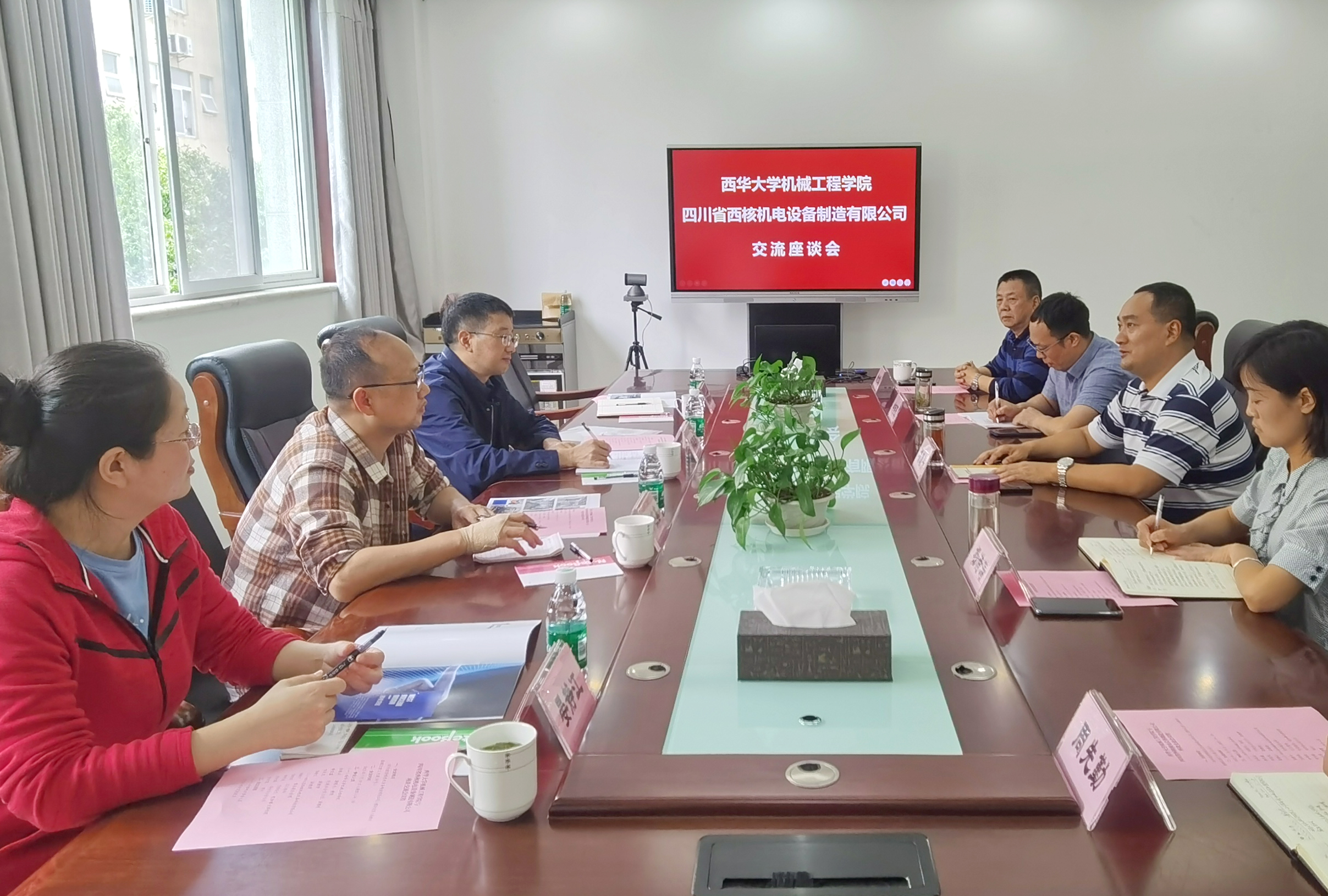 参观结束,召开现场座谈会,西核领导杨总介绍公司的主要产品及存在的问题,我院朱院也向贵单位介绍了西华的发展及机械工程学院的研发团队和主要成果。(图3,图4)