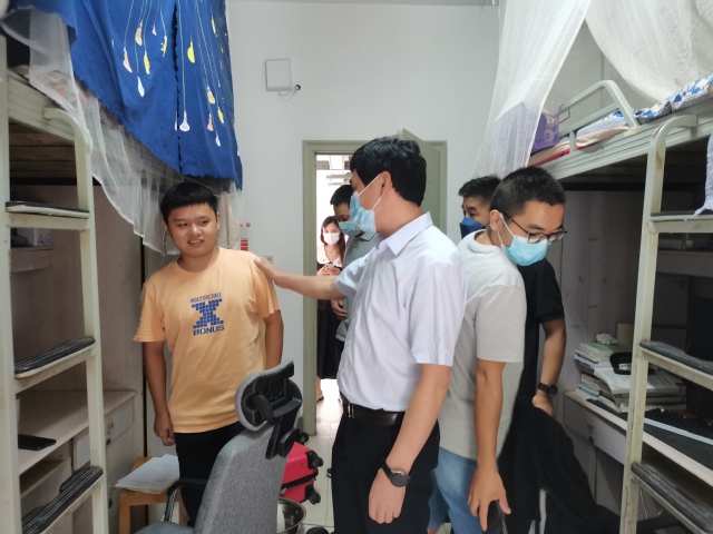 点击:223 为深入落实成都市疫情防控要求,全力做好学校新冠疫情防控工作,进一步了解同学们在疫情期间的身心健康、寝室卫生状况,督促同学们营造良好的学习和生活环境,2022年9月1日至2日机械工程学院党委书记郑宇、院长张均富、党委副书记、纪委书记李强及辅导员在学院团委学生会工作人员的引导下走访在校学生寝室,为同学们带来了专属的西华温暖。