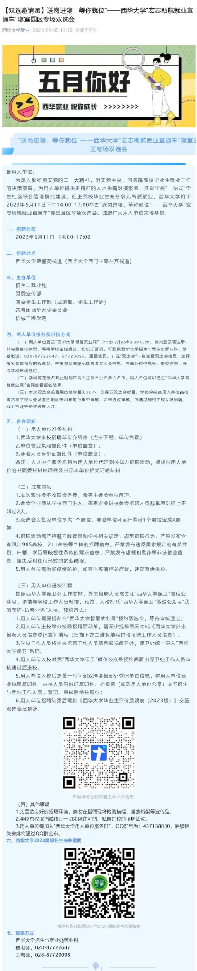 【双选邀请函】送岗进寝,等你就位”——西华大学“宏志助航就业直通车”寝室园区专场双选会