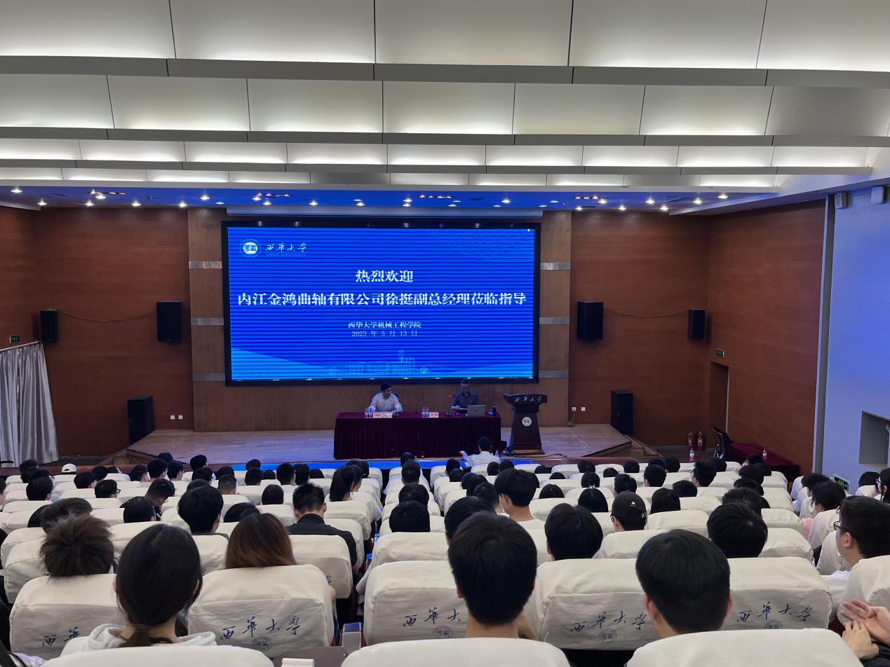 首先,徐挺副总经理对内江金鸿曲轴有限公司进行了简单介绍,然后以国际国内形势为切入点,从战争、自然灾害、疫情、经济增速变缓等角度讲述了中国所面临的形势,并重点讲述了高校毕业生就业形势和影响因素。他指出,2022年是“史上最难毕业季”。同时分析了高校毕业生入职应具备的能力,他表示高校毕业生应该找到合适的岗位并尽快融入其中,应为祖国的事业做出贡献。最后,徐经理从企业角度,给高校毕业生关于就业和择业的建议,希望同学们理论与实践相结合,锻造中国的精英。