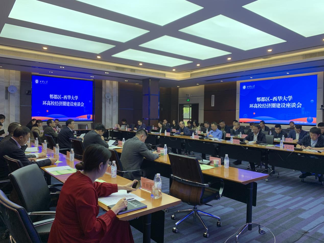 10月14日上午,郫都区与西华大学在学校办公楼101会议室召开“郫都区-西华大学环高校经济圈建设座谈会”,旨在深化校地融合,充分发挥西华大学的科教与人才资源优势,推动双方实现“双向赋能、共建共赢”的合作模式。聚力打造环西华大学经济圈,助力“科创高地、锦绣郫都”建设。