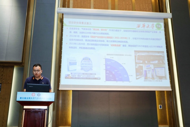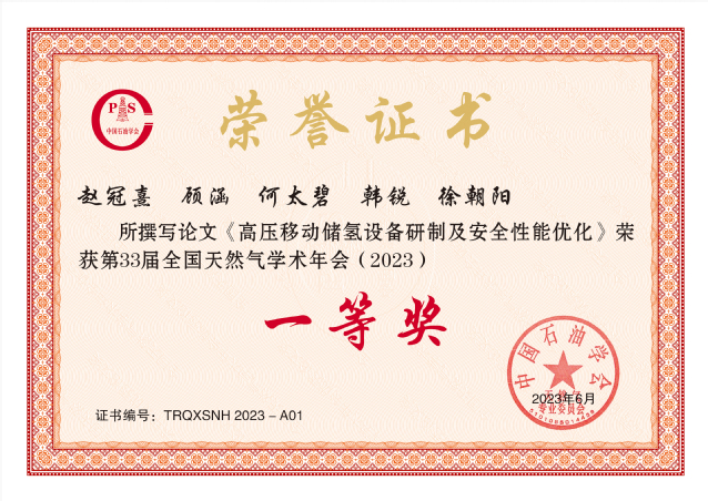 西华大学何太碧教授与韩锐教授联合组建的储能装备及系统研究团队受邀参加了此次大会,材料科学与工程学院2020级研究生赵冠熹代表团队在“新能源及节能减排”分会场,以“高压移动储氢设备研制及安全性能优化”为题作主旨报告,介绍了团队在“双碳”背景下,充分发挥机械和材料学科交叉的优势,针对国产碳纤维研制高承压、低成本、轻量化大容积储氢压力容器的相关工作。报告展示了我校在新能源储运装备领域中取得的最新进展,研究成果得到了与会专家和同行的高度认可,并以分会场第一名的评分荣获年会优秀论文一等奖。