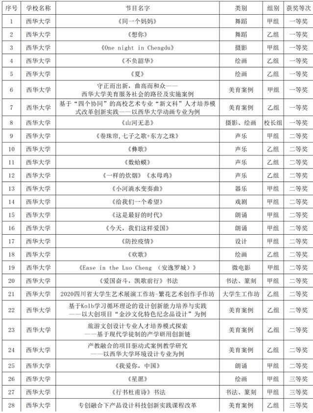 附:西华大学获奖作品信息