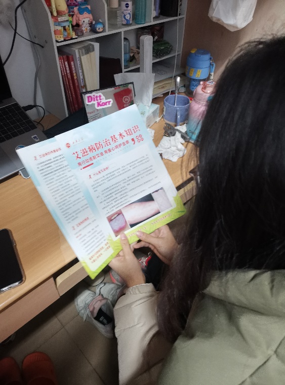 防艾教育进寝室。向学生寝室发放艾滋病防治基本知识宣传单,普及防艾知识。
