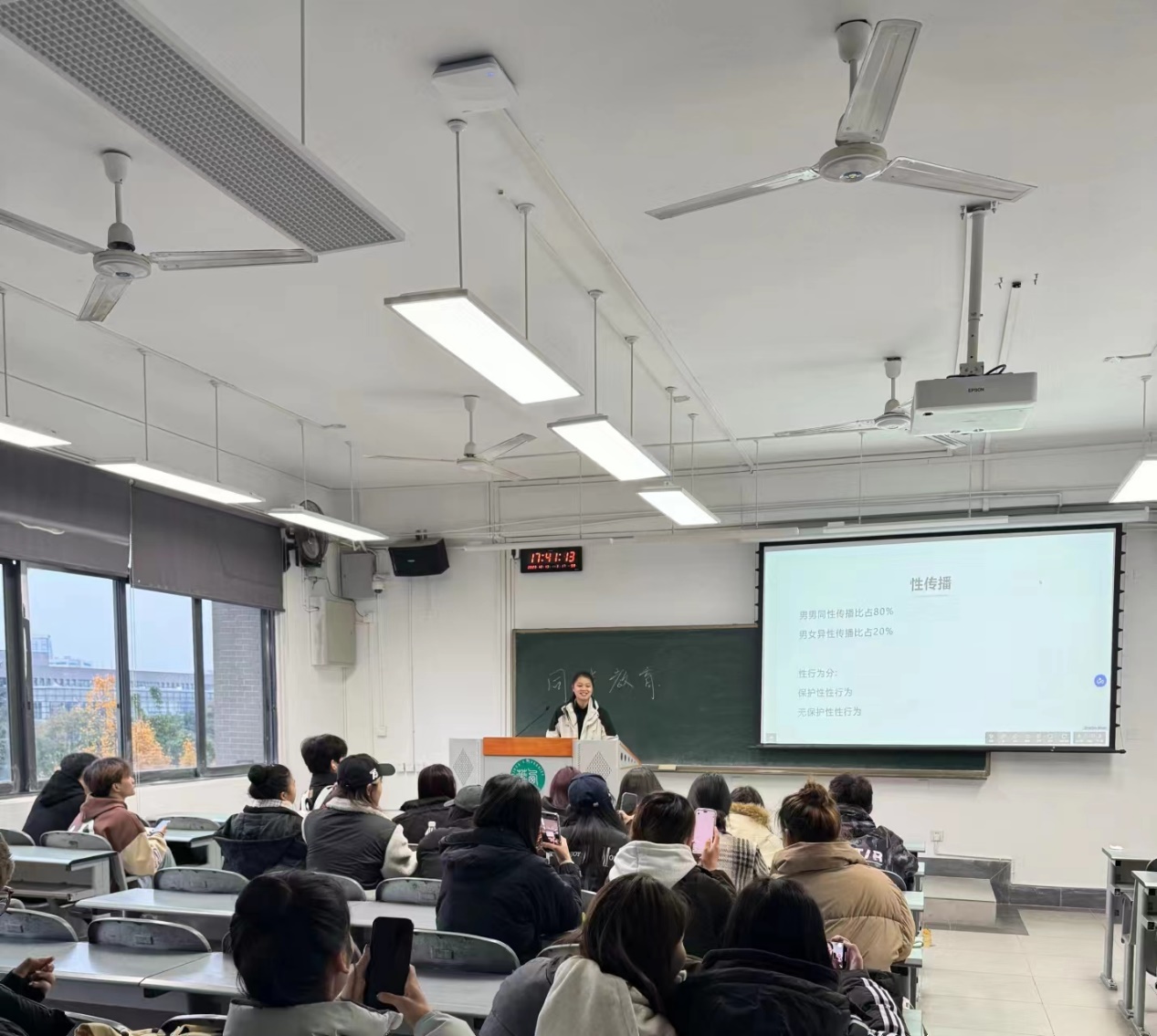 学院防艾同伴宣讲员司亦可在其所在班级进行了防艾知识宣讲
