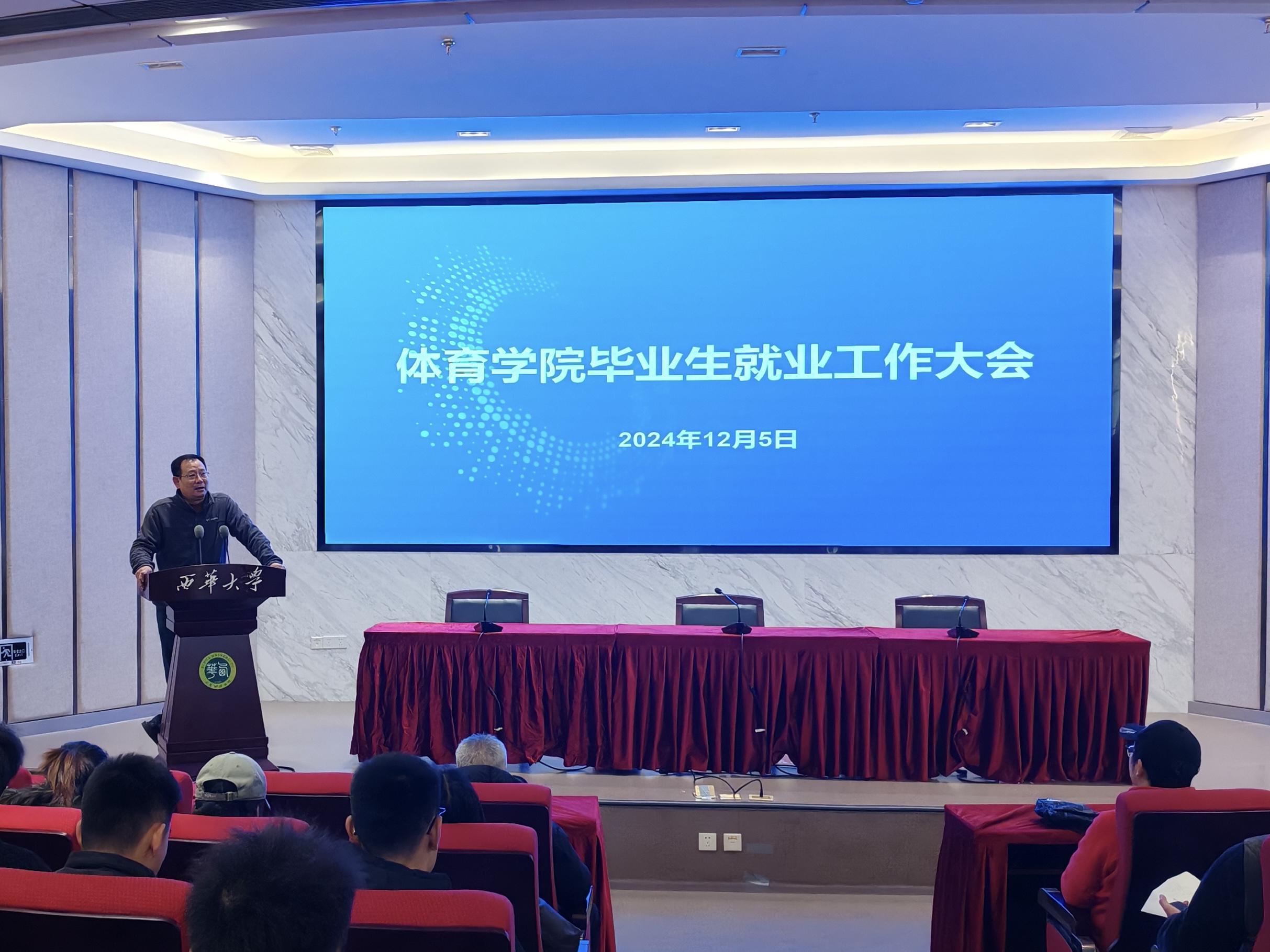 12月5日,体育学院在西华大学学术交流中心召开了2025届毕业生就业工作大会。本次大会旨在全面总结当前社会就业情况,明确下一步就业工作目标,动员全院师生共同努力,推动体育学院毕业生就业工作再上新台阶。学院领导班子成员、辅导员、各专项教师、毕业生论文指导教师以及2021级、2022级全体学生参与大会。会议由学院党委副书记钟灵波主持。