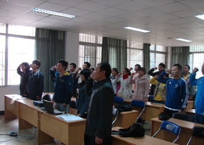 最后,与会全体同志在07级学生党员刘洋同学领誓下,庄严承诺:保持共产党员先进性,争当优秀共产党员。