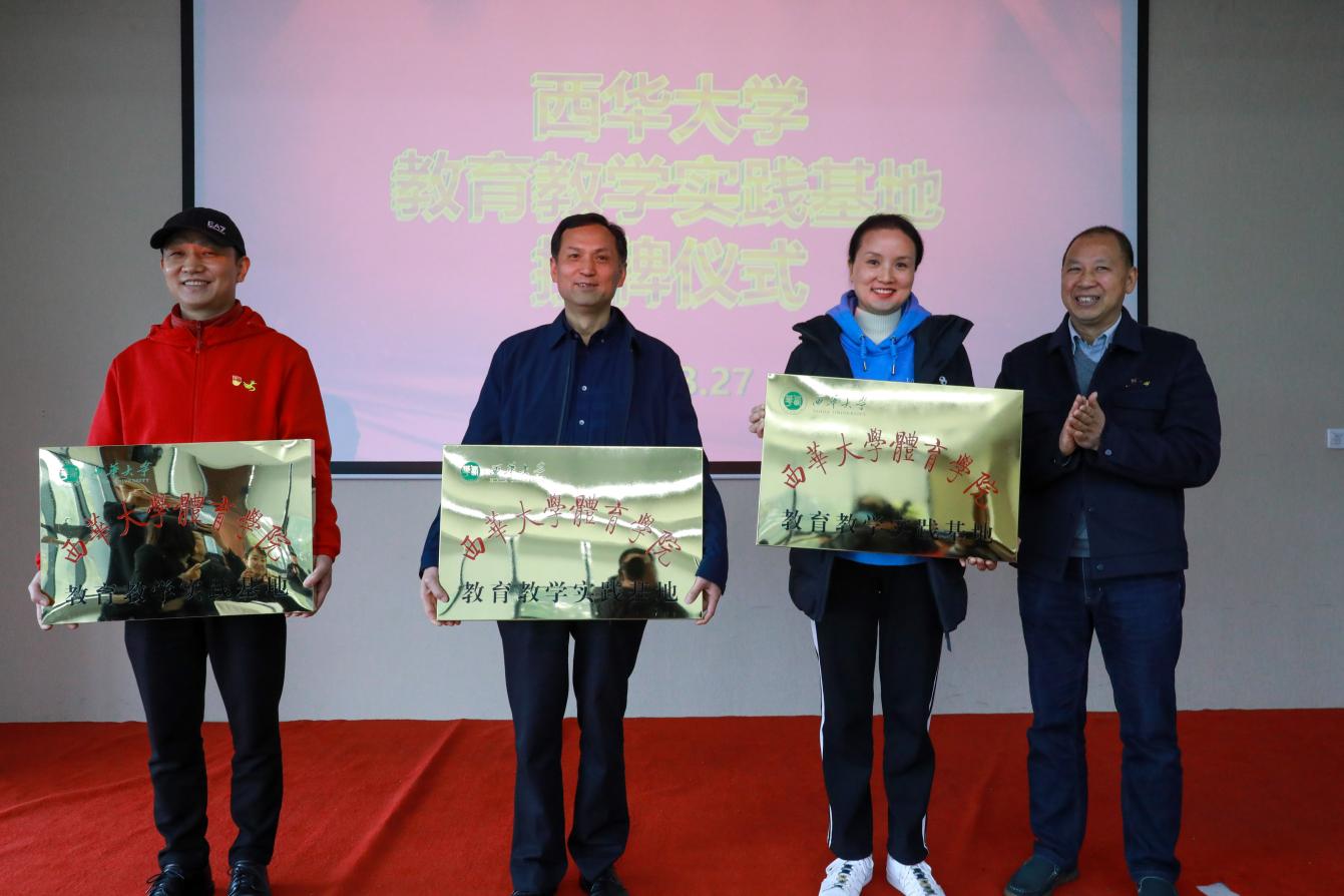 西华大学体育学院党委书记张彦分别向川体集团、川威大学、众欣旅游资源开发有限公司授予“教育教学实践基地”牌匾。