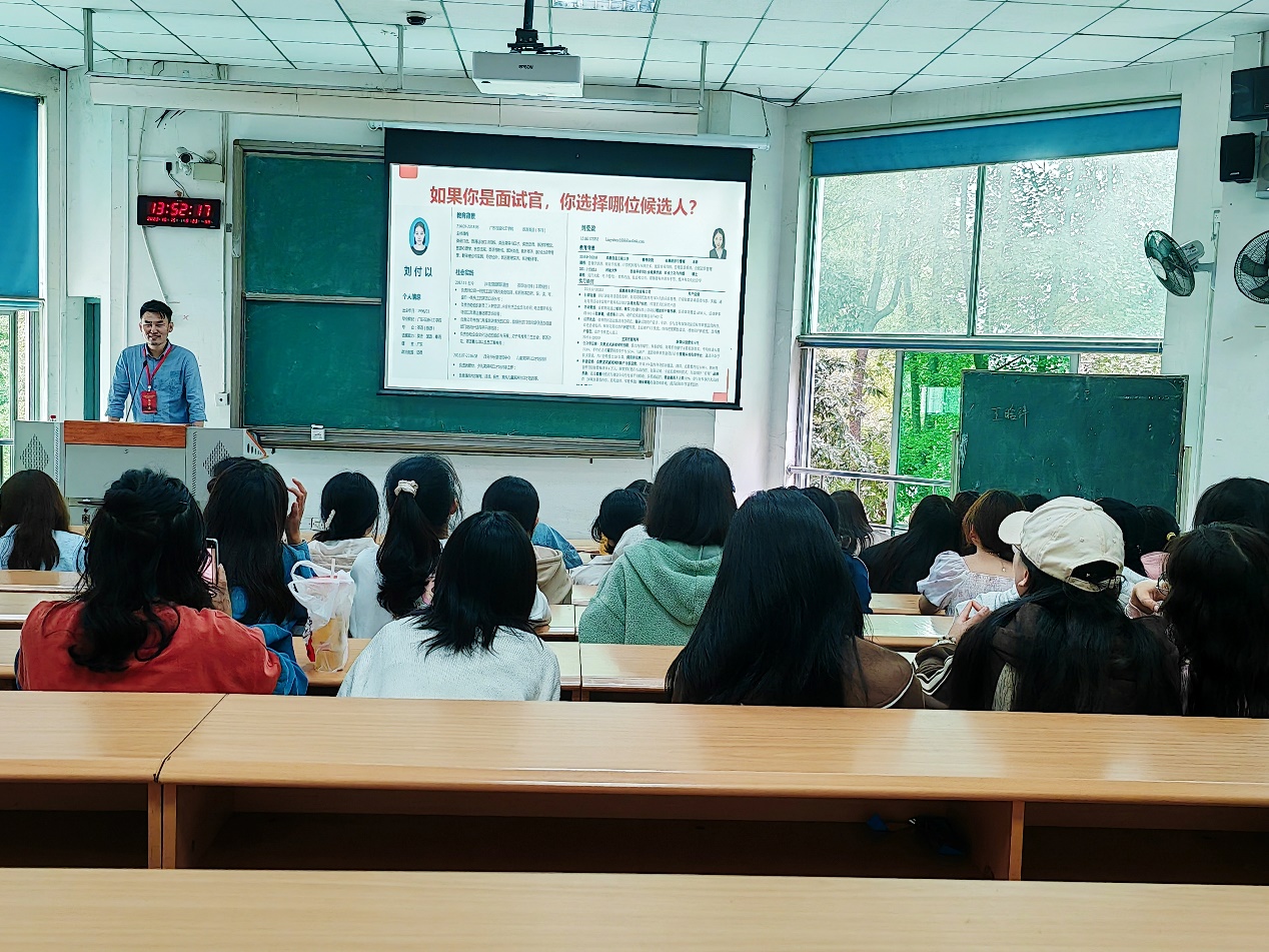 为了提升同学们的简历制作能力,在强内卷时代下脱颖而出,2023年10月15日下午,西华大学外国语学院校友经验交流分享会在4教B区301教室举行。学院优秀校友任春旺、宋晴受邀出席,活动由罗雨虹老师主持,外国语学院本科生和研究生出席本次活动。