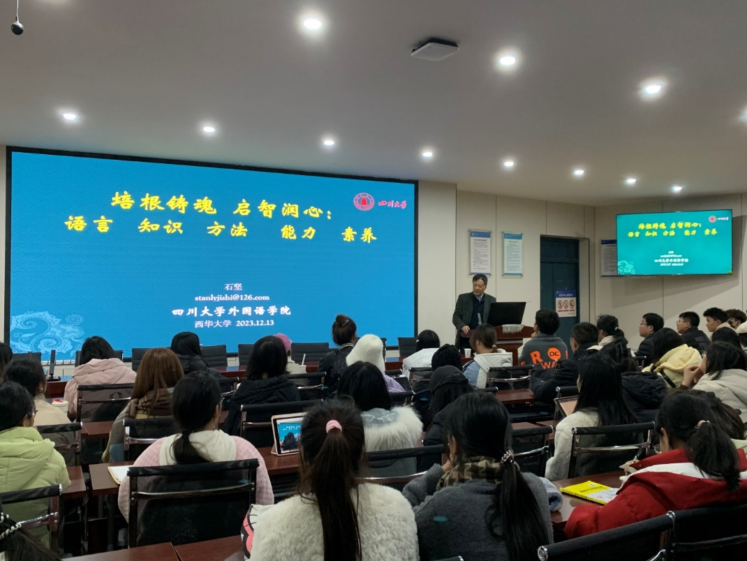 外国语学院加强师资培训工作,落实培养方案和教学大纲修订工作,积极建设第二课堂;推进《习近平谈治国理政》多语种版本走进西华大学外语课堂,切实提升“三进”教学工作实效;定期组织老师参加“习近平新时代中国特色社会主义思想”培训,邀请专家讲座;组织教师参加《理解当代中国》多语种系列教材任课教师培训。