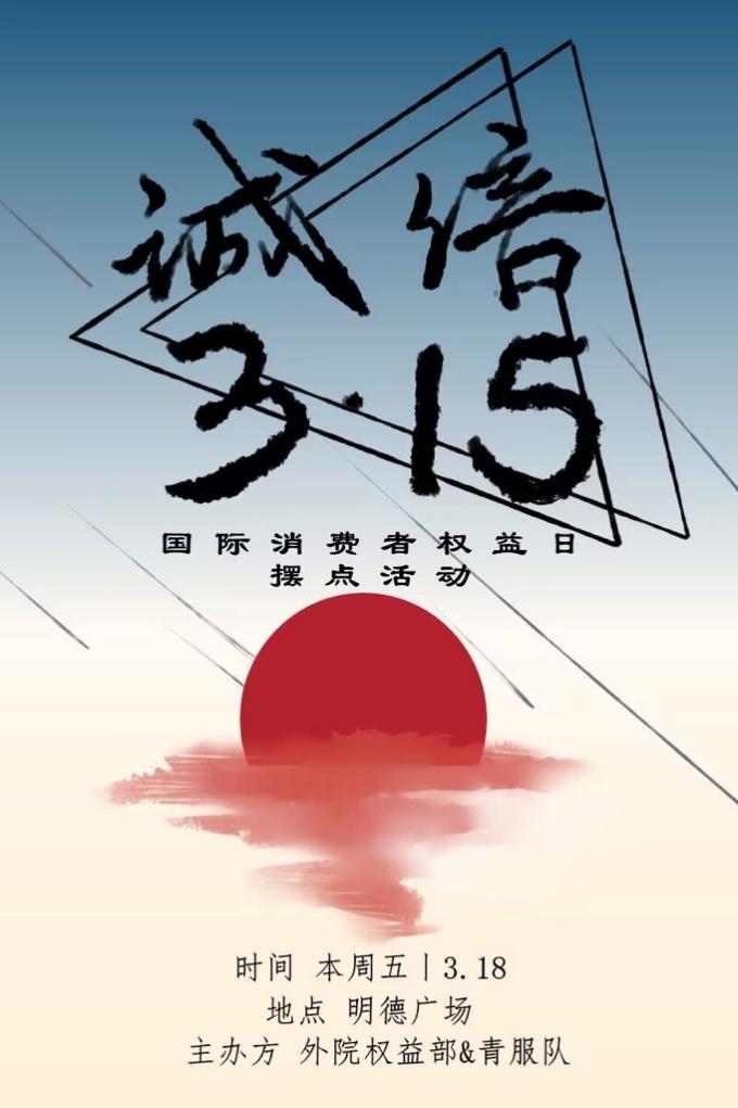 3月15日上午8:00-17:40,外国语学院学生会权益部和青服队联合开展的315消费者权益日宣传活动在明德广场展开。此次活动旨在让同学们了解维护自身权益的重要性,对假冒伪劣产品绝不姑息,坚决维护自身合法权利。