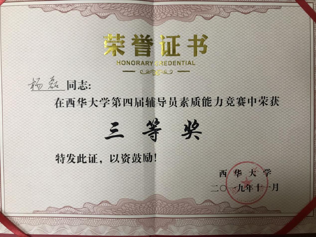 决赛结束后,我院辅导员杨磊老师和其他参赛辅导员一起宣读了高校辅导员誓词。经过激烈的角逐,杨磊老师获得第四届辅导员素质能力竞赛三等奖。这次比赛将会激励我院其他辅导员加强自身能力建设,重视学生工作,努力提高学生教育管理水平。