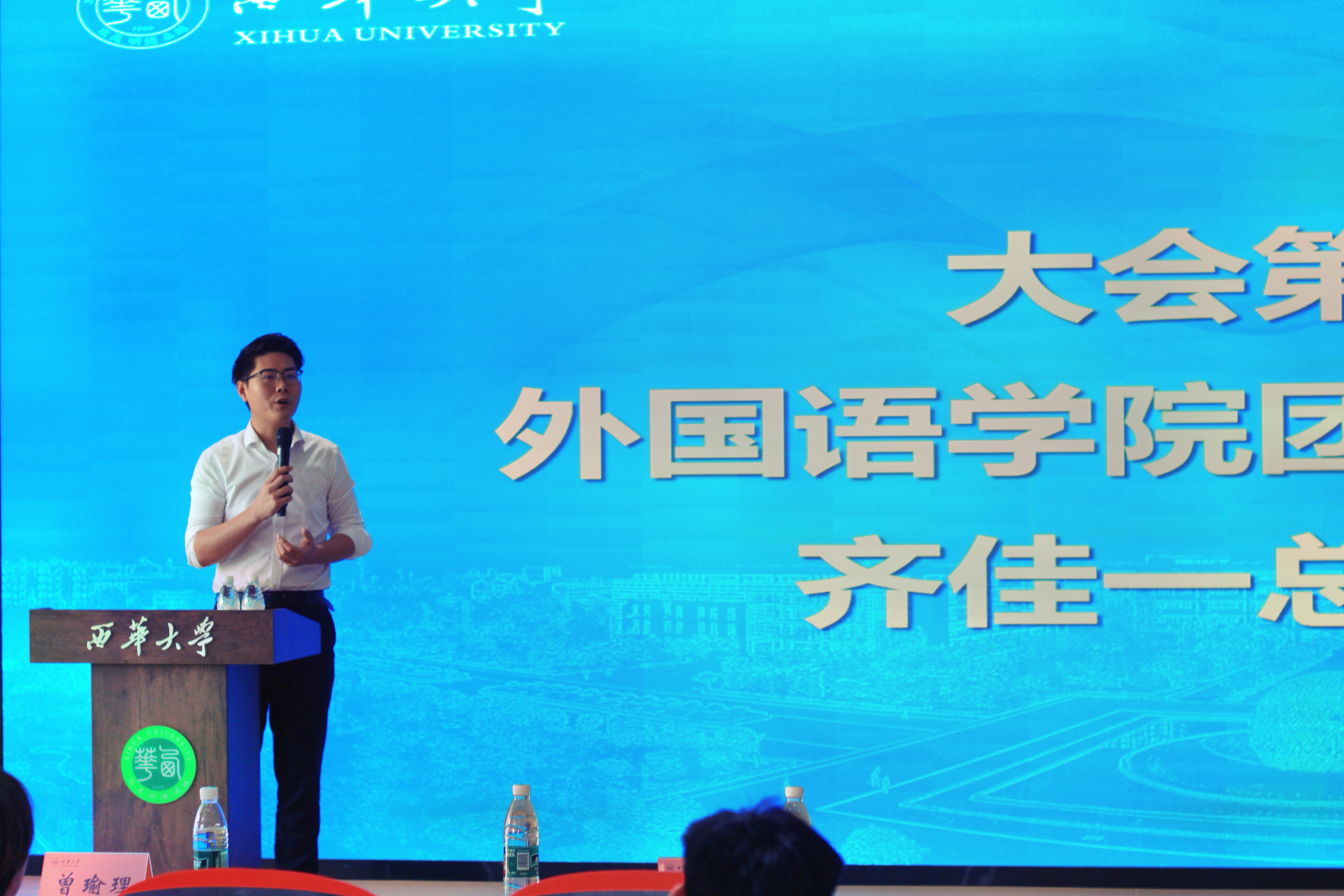 本次大会由团委学生会文体部部长周玟希主持。大会伊始,主持人介绍了参会的领导及老师,他们分别是外国语学院党委副书记万志昂教授,学工办主任杨磊老师,教学办主任曾渝理老师,2024级辅导员罗雨虹老师,团委指导教师齐佳一老师。