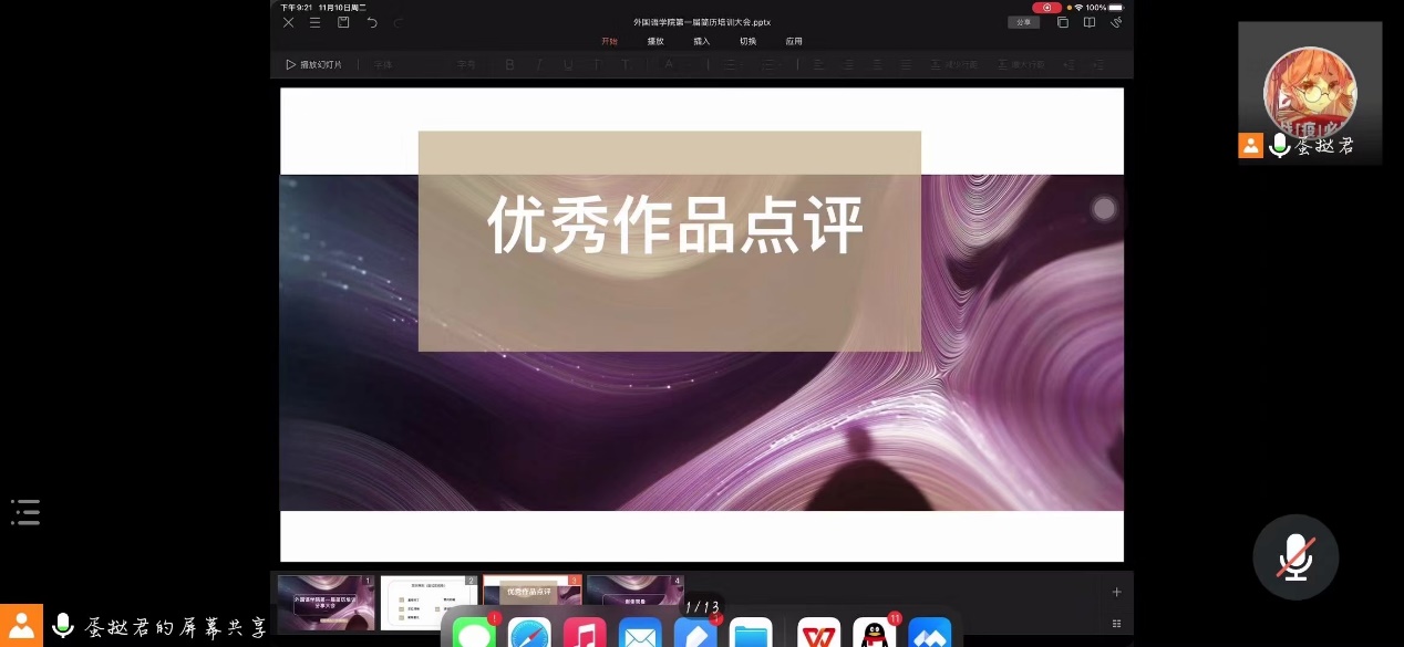 由外国语学院团委学生会举办的第一届求职创业模拟大赛中的简历培训分享大会于2020年11月10日晚9点通过腾讯会议以线上的方式顺利举办,外国语学院团委学生会指导老师兼19级辅导员彭陈丽老师为主讲人,为同学们带来了全面细致的讲解。