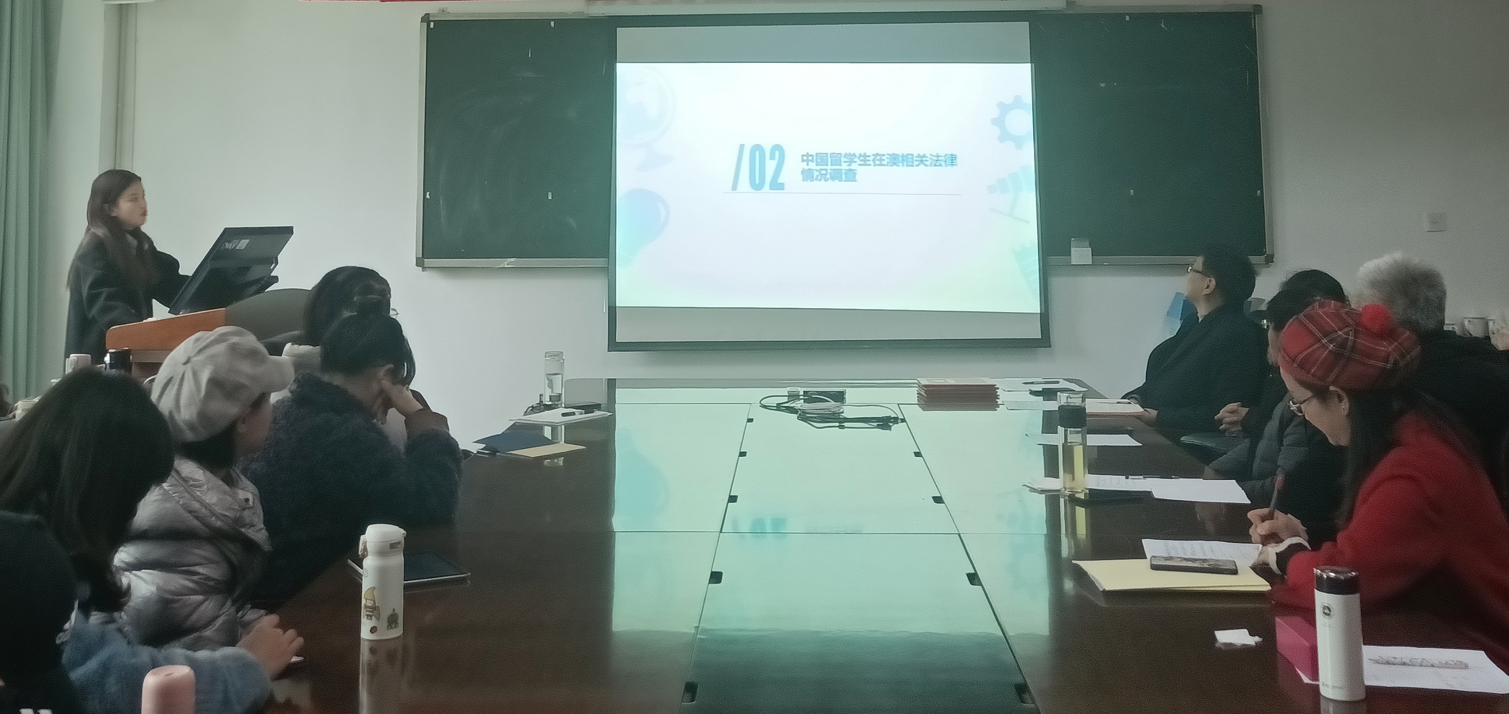 第二位进行论文分享的是2019级翻译专业硕士研究生符丹丹同学,其论文题目为《关于海外中国留学生法律关怀困境的研究—以在澳中国留学生为例》。符同学从对澳洲留学生遭遇法律困境的情况调查研究结果入手,总结出了留学生在外易遇到的法律问题及其特征,从国家部门、高校、留学机构三个方面分析了留学生频遇法律问题的原因。符同学根据其原因,针对性提出了有效避免留学生陷入法律困境的几点建议,旨在帮助广大海外留学生解决求学、工作以及生活中遇到的法律问题。
