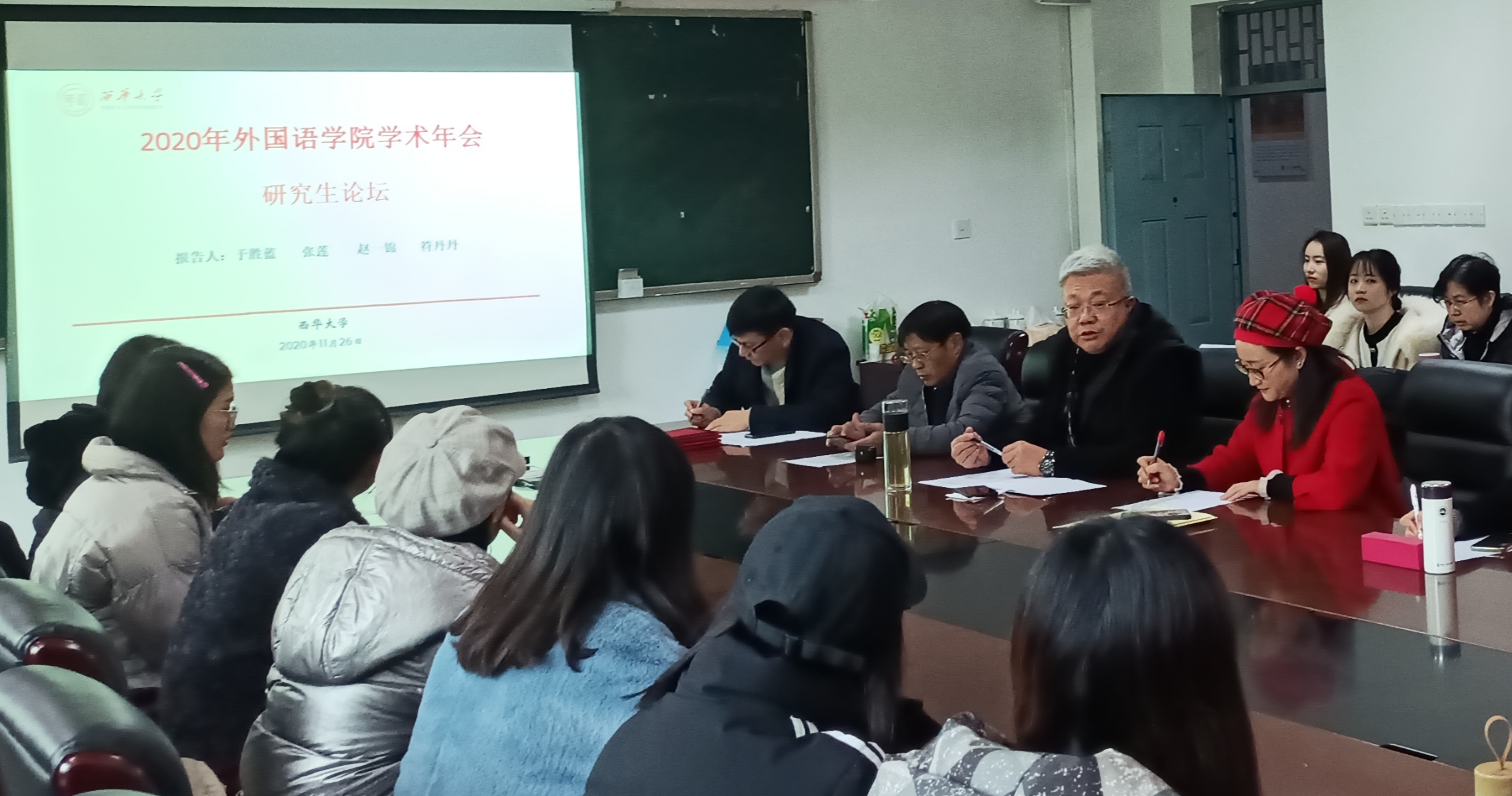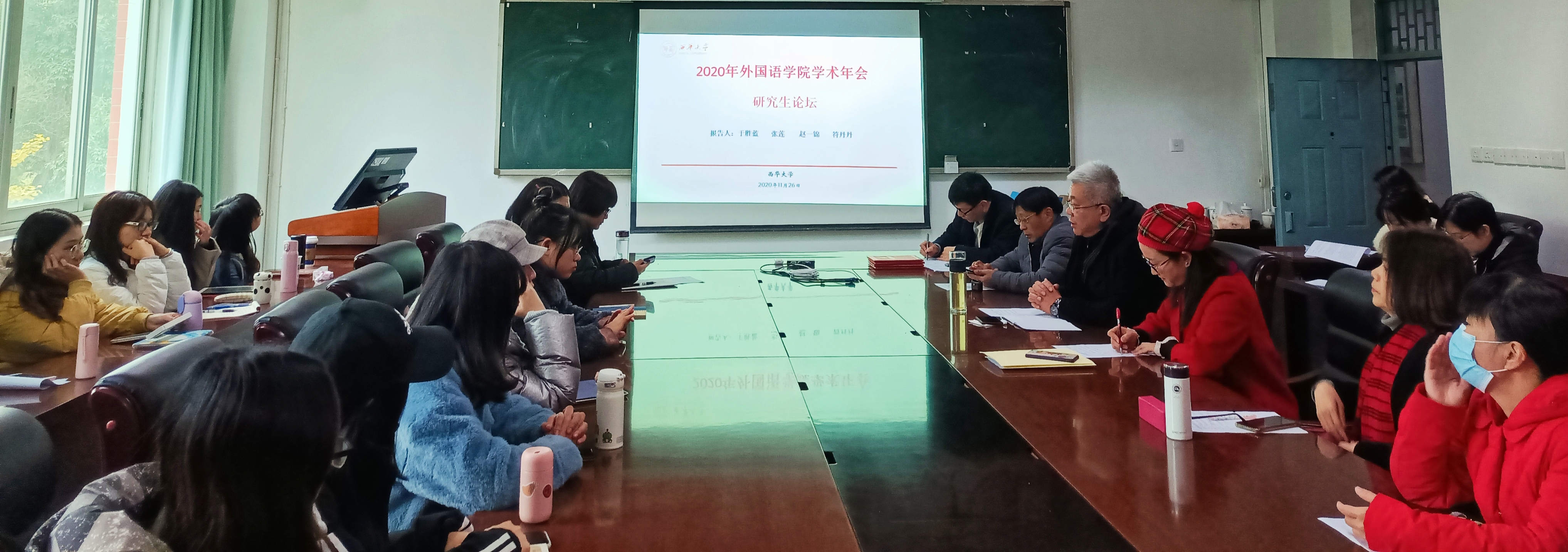 2020年11月26日14:30至16:30,外国语学院在4B-317学院会议室成功举办了2020年研究生学术年会系列活动之研究生论坛。本次论坛由外国语学院院长助理李学芹老师主持。外国语学院院长陈达教授、硕士生导师李瑛教授、龚小萍教授、何桂娟副教授、唐利平副教授、李新新副教授、王朝培副教授、王飞副教授出席了本次论坛。2019级、2020级全体研究生参加了本次论坛。