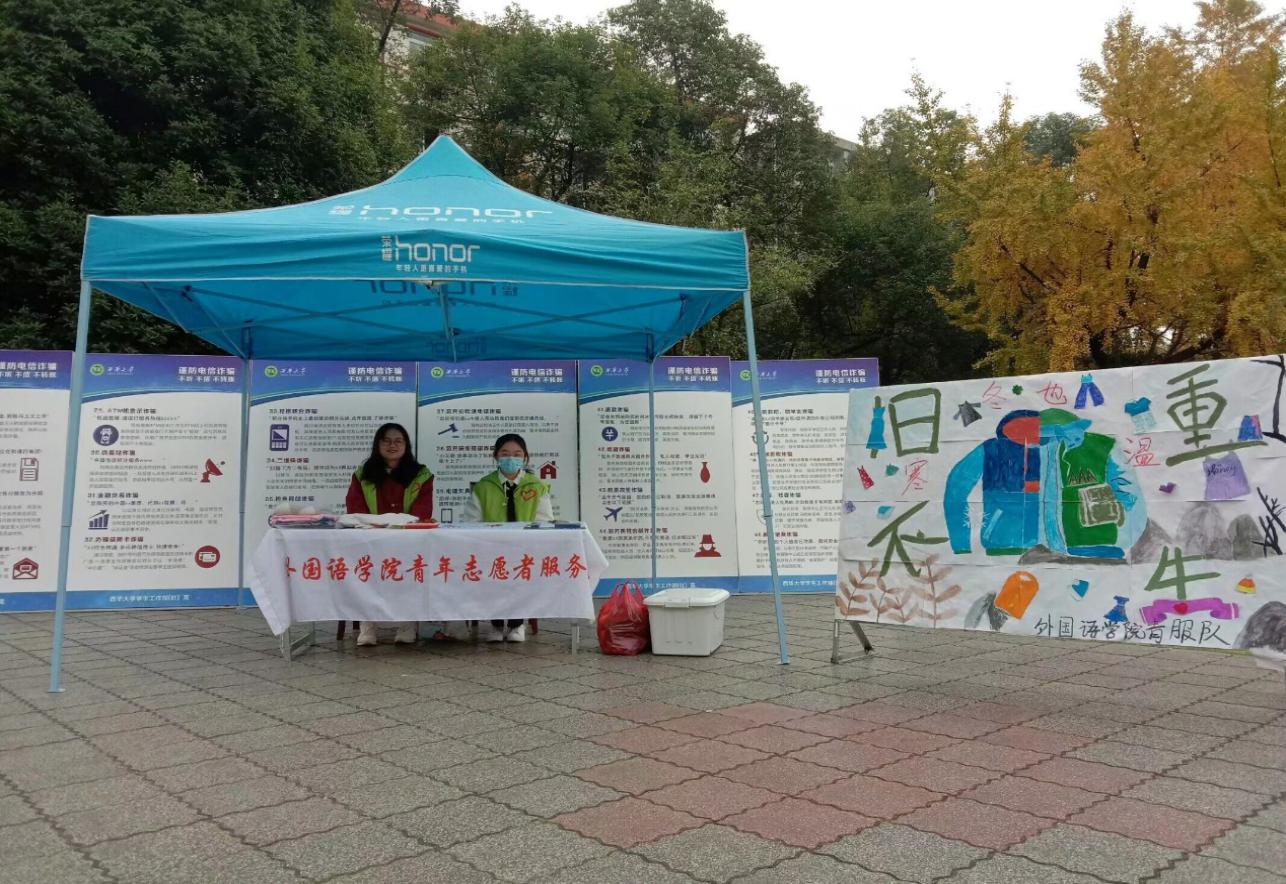 11月18日至30日期间,外国语学院成功开展以“旧衣重生,寒冬也温”为主题的旧衣重生活动,此次活动旨在通过呼吁同学们自发地向贫困山区儿童捐赠衣物的方式来增强大家对留守儿童、贫困人口的重视与关心,本次活动取得了校内外广泛爱心人士的一致好评!