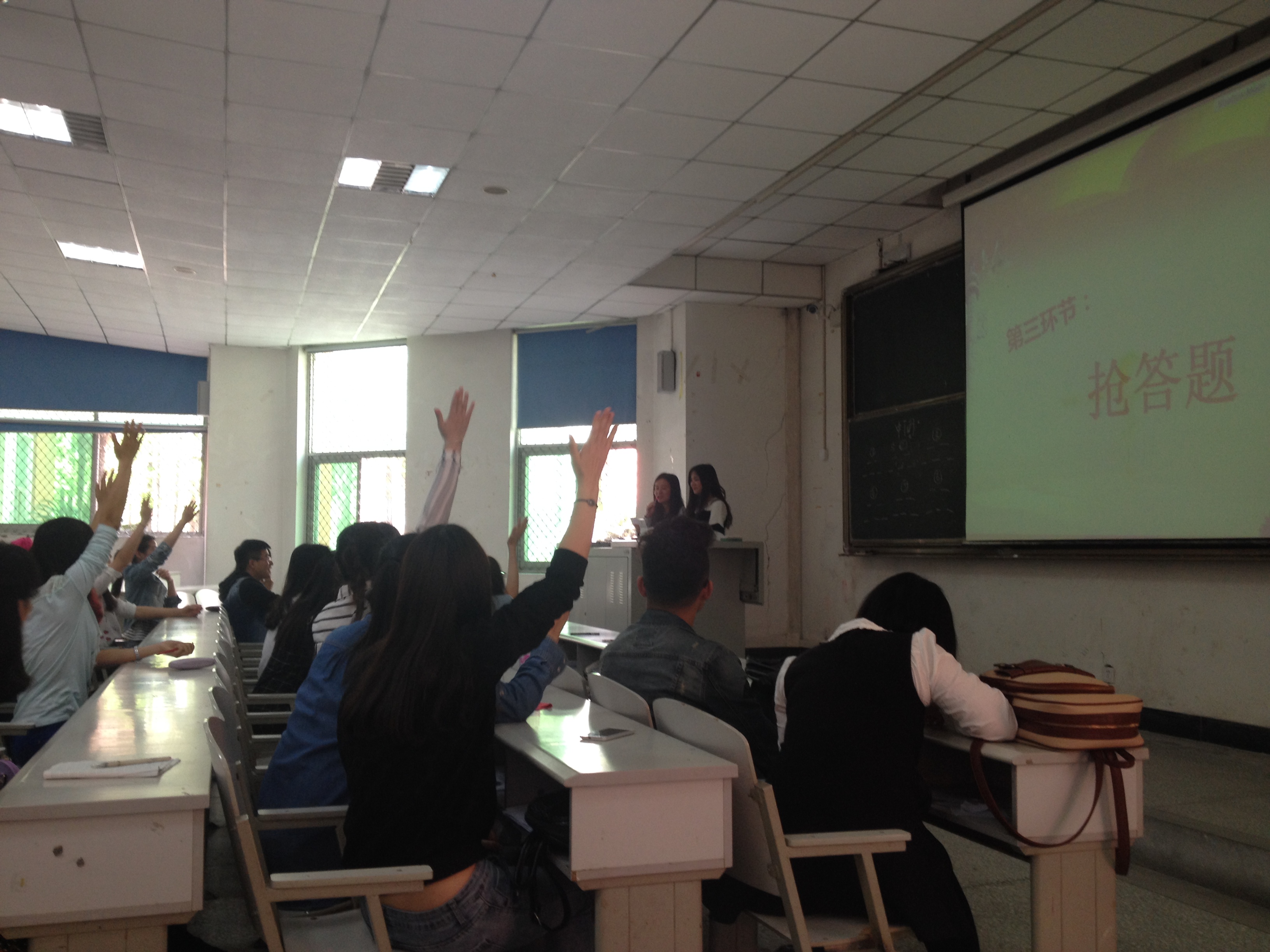 这是外国语学院学生党支部于4月3日中午12:20在4A-104教室举办的“十八大精神及党章知识竞赛”组织生活的一段问答。此次组织生活旨在引导和教育学生党员“知党史、懂国情、悉民生”,积极了解和学习党和国家的相关政策方针,全面理解党的精神,提升自身政治修养,并学以致用,努力作好学生党员表率先锋作用。学院2012级、2013级所有学生党员参加了竞赛,各年级入党积极分子到场观摩学习。学院学生党总支书记王慧、2012级日语专业辅导员梁正科、2014级辅导员王丹丹到场观看了比赛。