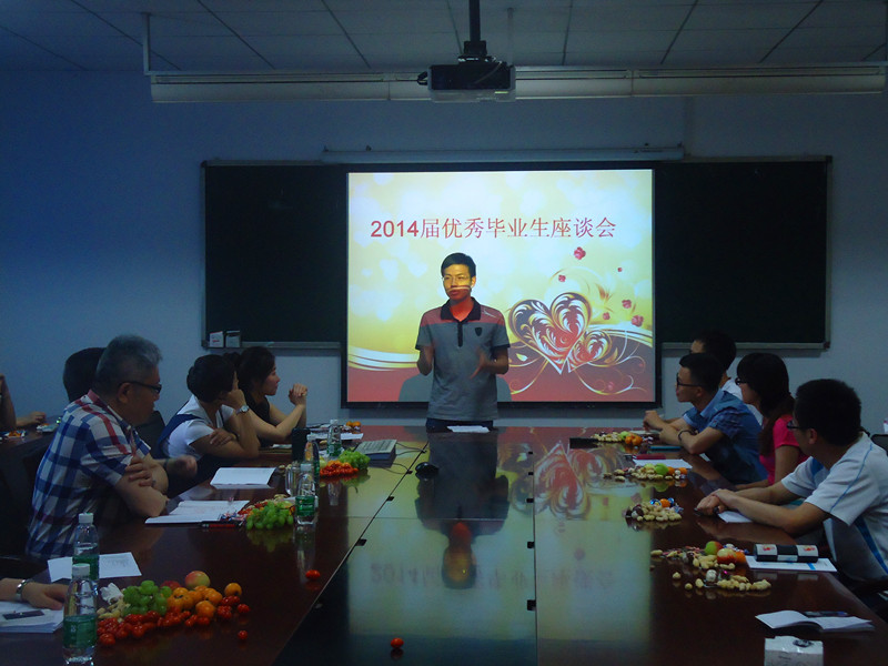 年年岁岁花相似,岁岁年年人不同,又是一年毕业时,5月29日下午3:30,外国语学院在学院会议室召开了优秀毕业生座谈交流会。学院党委书记蒋志勇,院长陈达,党委副书记兼副院长曾国勇,副院长董小莉,英语系主任李国宏,日语系主任尹建英,团委副书记曾渝理以及2010级辅导员程曦参加了座谈会。徐颖、石雨萌、王柏森等12为优秀毕业生与大家畅谈了大学四年的学习生活和就业未来。