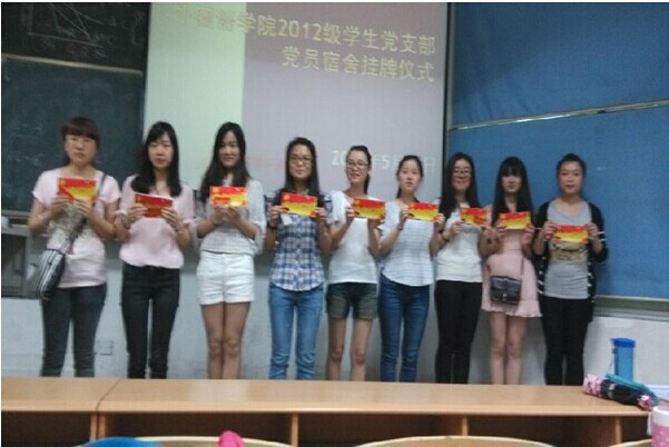 为了增强学生党员的党员意识,加大对学生党员的监督力度,促进学生党员的模范带头作用,同时,以党建为龙头,深化学院学风建设。5月20日,外国语学院学生党总支牵头,在学生支部开展以“一名学生党员,一面先锋旗帜”为主题的“学生党员寝室挂牌”活动。