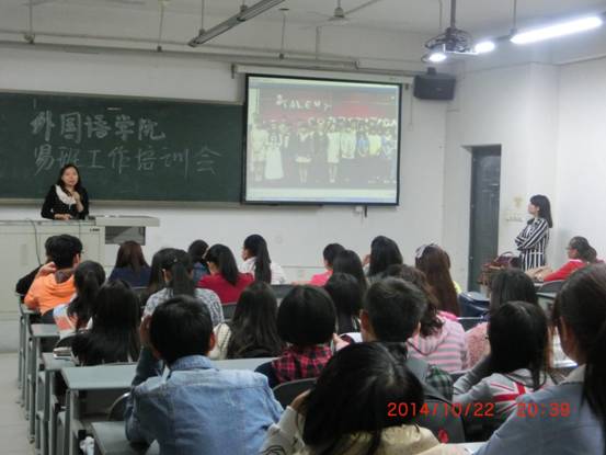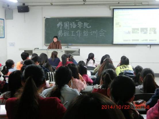为使外国语学院新生对易班有更全面的了解,10月22日晚,外国语学院在6C213开展了新生易班工作培训会。外国语学院易班指导老师张静、新生辅导员王丹丹、易班工作站成员及2014级新生班委参加了本次培训会。
