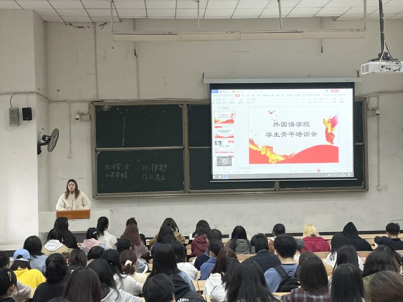 为进一步提高我院学生骨干的综合素质、树立远大的理想,增强自我教育、自我管理、自我服务的意识,规范和建设学生骨干队伍,2021年3月21日下午5点30分,外院团委学生会于4A-404召开了学院学生骨干培训会。本次培训会邀请了2019、2020级团支书以及团委学生会全体成员参加。