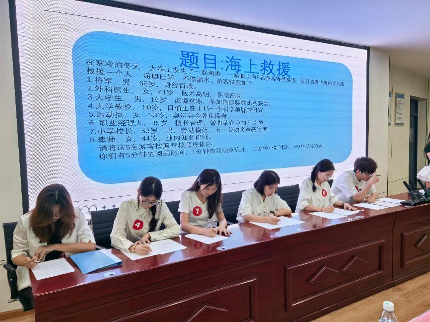 大赛模拟真实招聘流程,设置两轮精彩博弈。首轮结构化面试,10名选手在限定时间内沉着应对,清晰阐述个人优势与职业规划,充分展示专业底蕴与应变能力。经过首轮严格筛选,6名表现优异的选手脱颖而出,晋级第二轮。第二轮无领导小组面试环节,选手们围绕预设议题展开深度讨论与协作,在观点碰撞中展现分析能力、沟通技巧、领导潜质与团队精神。场上思维激荡,智慧交锋,选手们展现出外院学子卓越的综合素质与初入职场的蓬勃锐气。