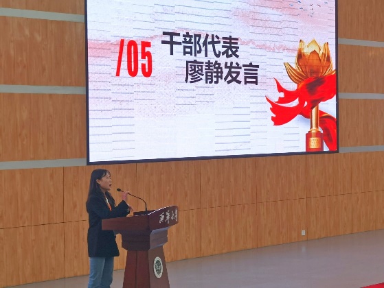 随后,各部门代表进行述职报告,对本学年的工作做出全面、客观、深入的总结;并结合部门自身特点,向团委学生会所有成员传授宝贵的工作经验。让在场观众看到了各个部门为达成目标、践行心中的使命的勤恳耕耘。部门述职结束后,干部代表廖静就本学年工作发表感想,她指出团委学生会不仅是一个学生们工作的部门,也是大家朝夕相处的家庭,希望大家再接再厉,勇攀高峰。紧接着,对每月之星、优秀部门进行了表彰。这不仅是对部门本学年工作的肯定,更是鼓励各部门在下一学年的工作中共书宏篇巨作、开拓新的版图、闯出一番天地。