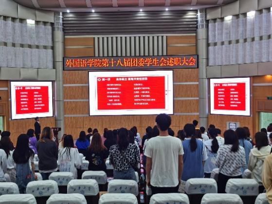 本次大会由学科部部长李元力主持,团委指导老师彭陈丽莅临现场,与外国语学院第十八届团委学生会全体成员共同参与此次大会。