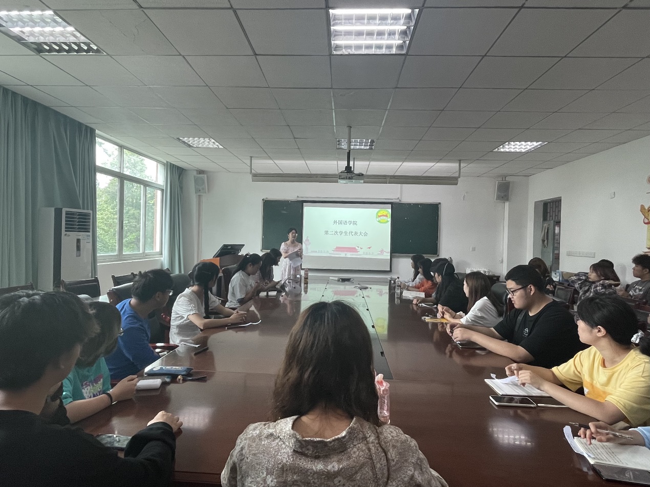 为选举产生外国语学院第十九届学生会主席团,根据《中华全国学生联合会章程》、《工作规则》中有关规定,外国语学院于2021年6月17日(星期四)中午13:00在学院会议室召开了学院第二次学生代表大会。