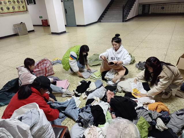10月30日至11月6日,志愿者们在联系好捐赠目的地后,对回收的衣物进行了整理、清洗消毒并统一打包寄到受捐赠地点——宜宾市高县月江镇。