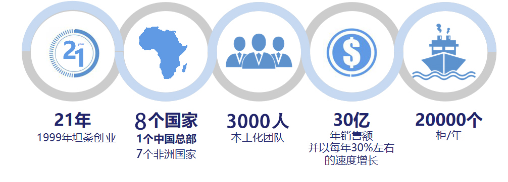历经22年的发展,集团已经在坦桑尼亚、南非、莫桑比克、肯尼亚、尼日利亚、加纳、科特迪瓦等多个非洲国家设立了7家分公司、8家工厂等;2019年,博达公司销售额达30亿人民币,海外员工3000多人,常驻海外中方管理干部近300人,年度复合增长率保持在30%以上,发展潜力巨大。