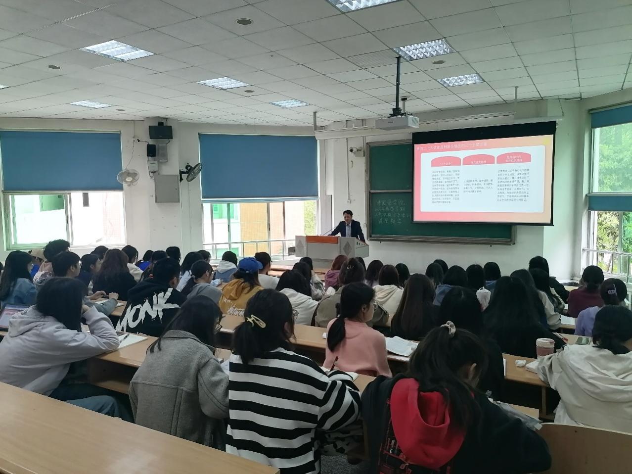 4月11日中午12:30,入党积极分子培训班第二次课堂教学在4A303举行。外国语学院党委副书记罗海老师以“从党的百年历史中汲取智慧和力量、感悟初心使命”为主题进行专题授课。罗书记介绍了党的百年历程,并分析了党的初心使命,用生动的例子讲述了革命先辈不怕牺牲、勇于奋斗的拼搏精神。