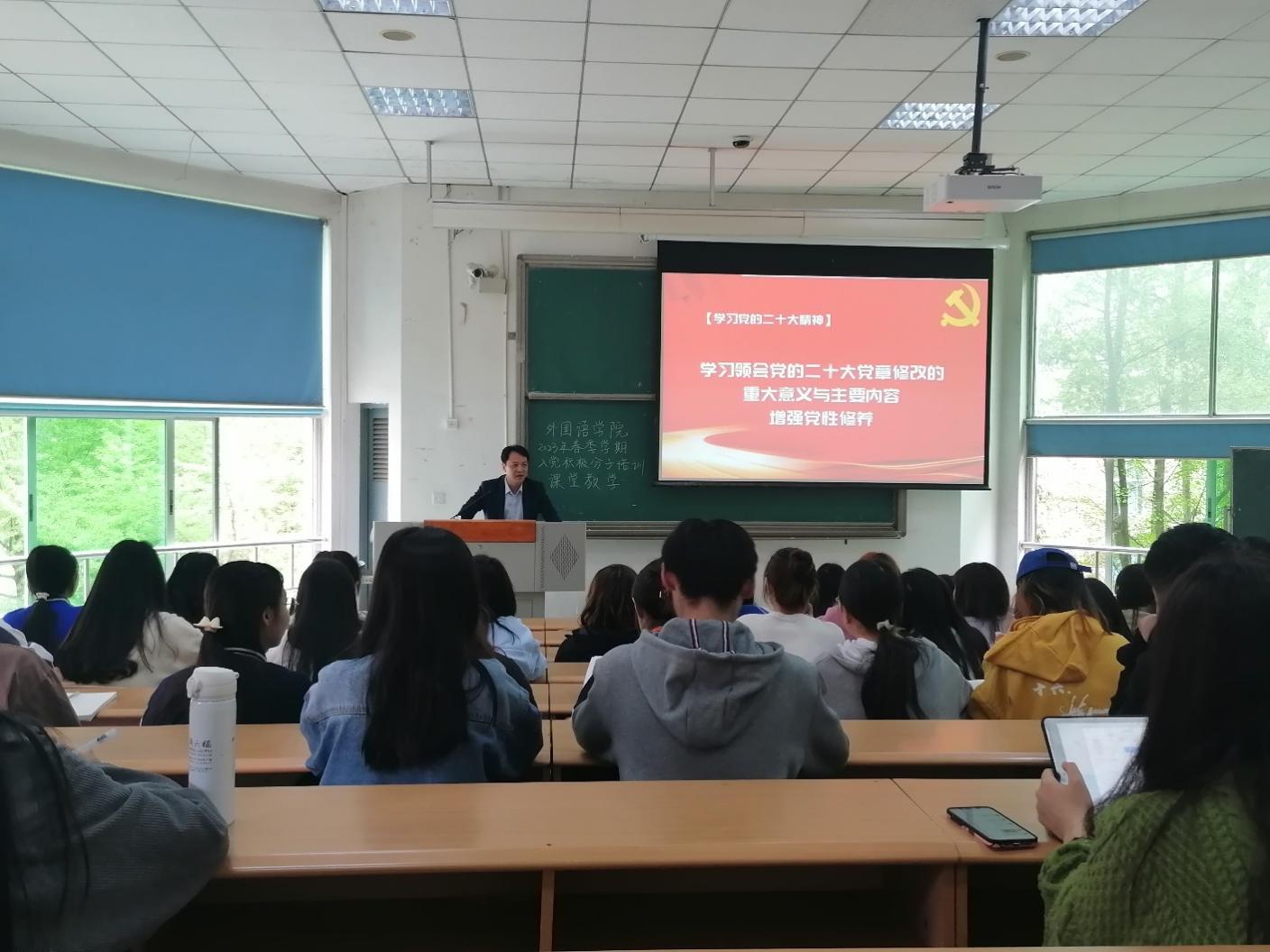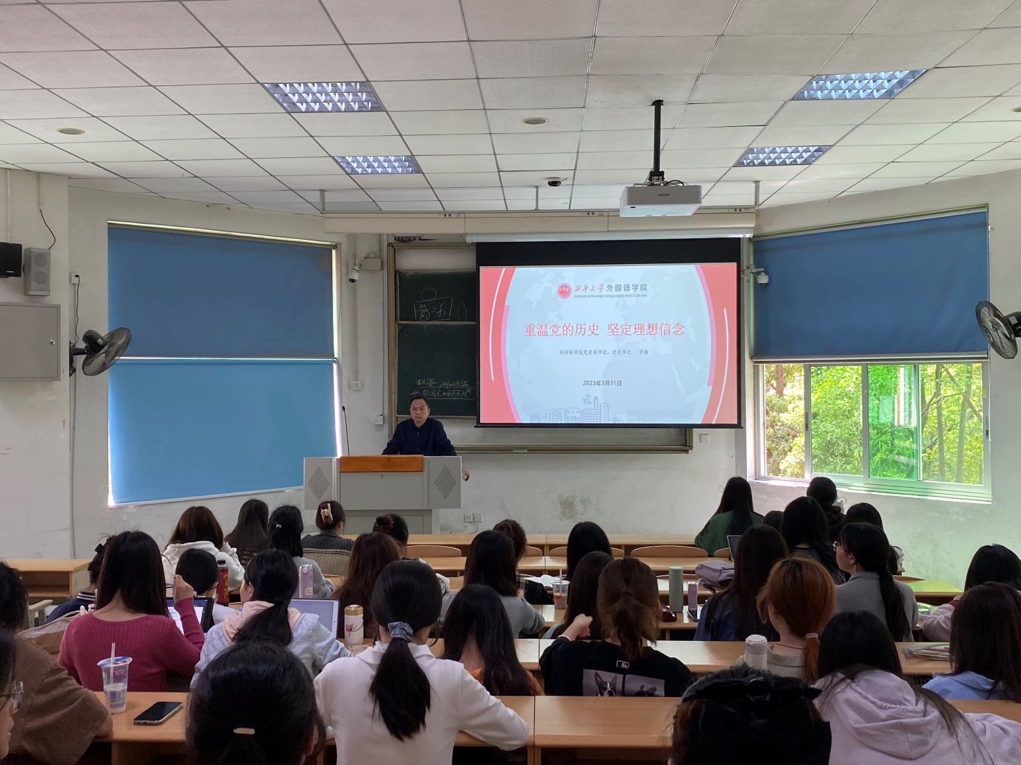 4月7日,西华大学外国语学院在4b301召开了2023年春季学期入党积极分子培训班第一次课堂教学活动。西华大学外国语学院党委书记唐润华书记出席活动,并以“领会党的二十大党章修改重要意义与主要内容 增强党性修养”为主题进行授课。