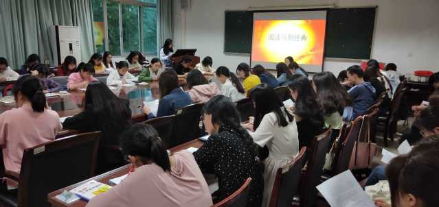 图为外国语学院第42期党校培训班阅读马列经典