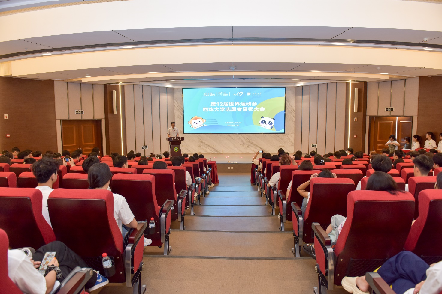 7月25日,“青春筑梦·志愿同行”第十二届世界运动会西华大学志愿者誓师大会在学术交流中心报告厅举行。党委常委、副校长费凌出席,成都世运会执委会人力资源部(志愿者部)耿安子老师,党委宣传部、学生工作部、校团委相关负责人,世运会领队老师和307名志愿者参加,大会由校团委书记石元鹏主持。