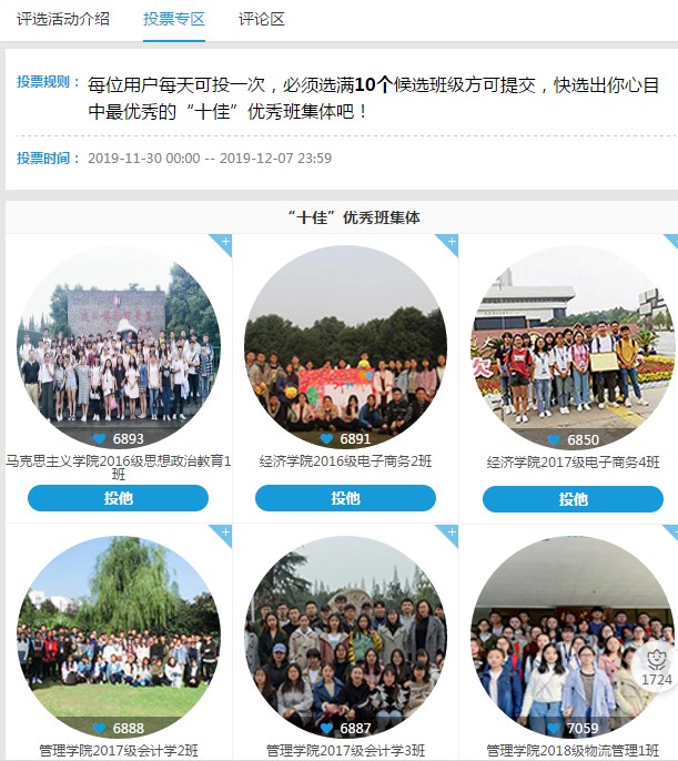 据悉,为更好地宣传“十佳优秀班集体”先进事迹,扩大其影响力,11月30日-12月7日,学校利用易班平台开展了网络投票,并进行了网络班级风采展示,参与投票人数达4700余人次,投票数达22万左右;同时,学校组织了“班级风采展示周”主题活动,充分展示了申报班集体在学风建设、班级活动、班级荣誉等各方面的成绩,在全校师生了引起了良好反响。