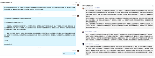 在学生代表网络主题分享会上,同学们踊跃分享自己的心得体会,纷纷表示,中国力量、中国速度、中国智慧令人备受鼓舞,习近平总书记在回信中对青年一代的殷切嘱托和深刻关怀让大家深受感动、深感振奋。