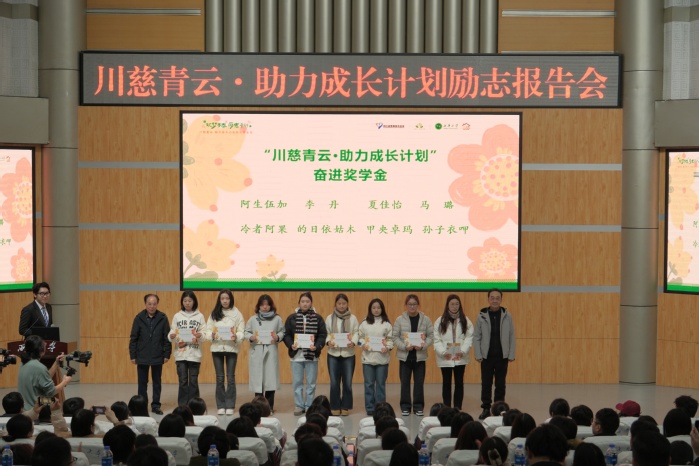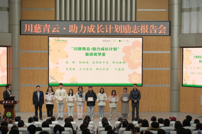 为彰显受助学子风采,讲好青春励志故事,营造“人人向善、事事行善、时时可善、处处有善”的公益文化氛围,12月10日下午,由四川省慈善联合总会与西华大学共同主办的“筑梦青春,励志于行”——川慈青云·助力成长计划励志报告会在西华大学顺利举行。四川省慈善联合总会会长益西达瓦,共青团四川省委副书记、省青联副主席蒋亭,西华大学党委常委、副校长费凌等各级领导,四川省福建商会等爱心组织,西南石油大学等五所在蓉合作高校的老师及受助学生代表参加报告会。