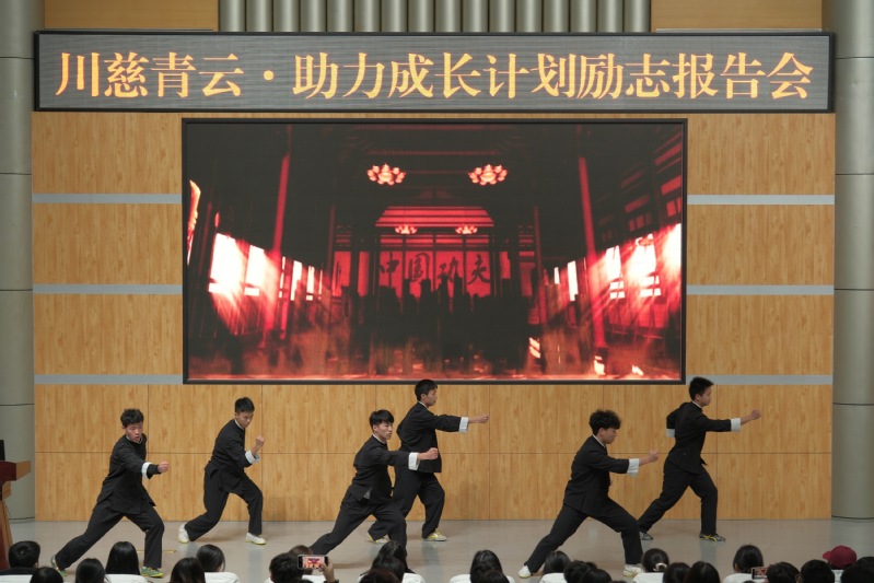 本次活动在西华大学体育学院带来的武术表演中拉开序幕。西华大学费凌副校长代表主办单位对全体来宾表示热烈欢迎,向社会各界爱心人士对慈善事业的关心以及学生资助工作的支持表示感谢。他指出,学校高度重视学生资助工作,将近万名家庭经济困难学生群体资助育人融入人才培养体系,贯通“三全育人”“五育并举”的全过程和各方面。学校整合校内外育人资源,完善发展型资助工作机制,推进数智化转型升级,持续提升资助工作科学化水平,让学生资助更加透明、更加高效、更加精准。他在致辞中勉励受助学生,把感恩之心、感激之情化为成才之志、奋发之源,传递大爱、艰苦奋斗,在推进强国建设、民族复兴伟业中展现青春作为、彰显青春风采、贡献青春力量。