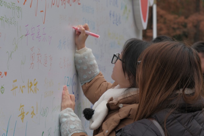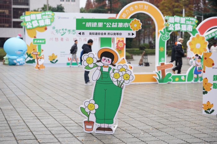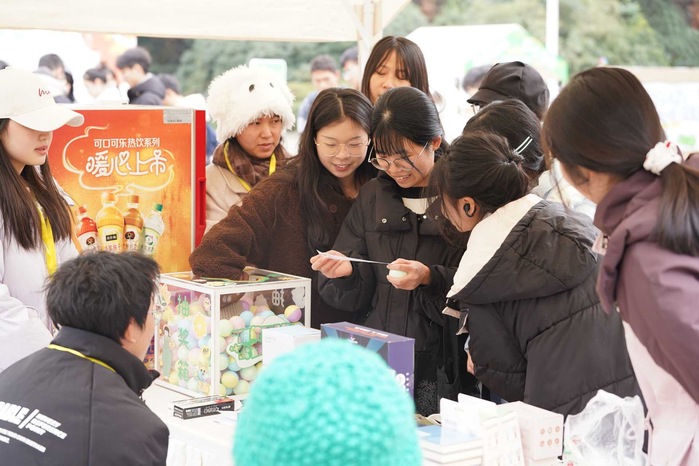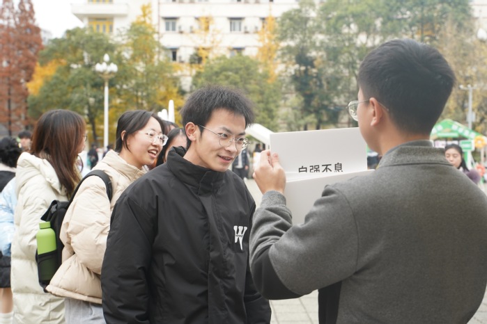 报告厅外,在西华大学“一站式”学生社区的组织下,“明德里”公益集市活动也在如火如荼地开展中。智慧打卡、趣换公益好物、感受非遗魅力、参与公益抽奖等精彩纷呈的活动环节,吸引师生纷纷驻足参与,一起用爱与奉献温暖冬日时光。
