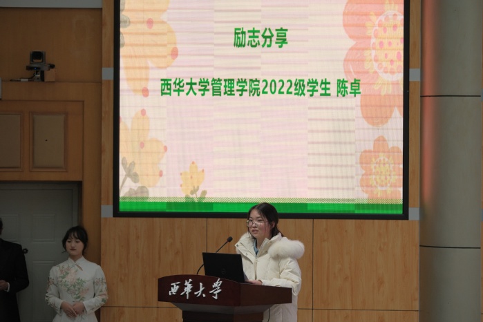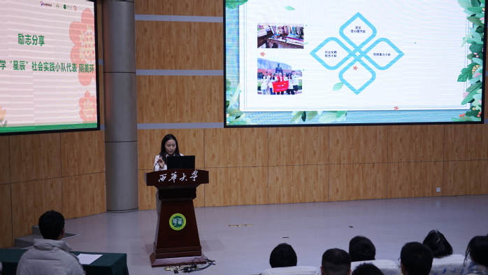 随后,西华大学管理学院学生陈卓、四川师范大学法学院毕业生冯攀莉、成都中医药大学“星辰”社会实践小队阴美环和成都文理学院高孝清泉,分别代表受助学生、优秀公益团队和个人做励志报告。他们结合自身成长经历,分享了如何克服困难、追逐梦想,在公益道路上的成长与收获,并呼吁同学们心怀感恩、努力奋斗、回报社会。
