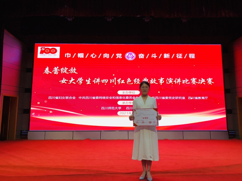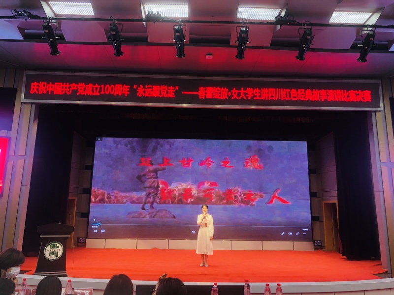 2021年6月8日,由四川省妇女联合会、中共四川省委网信办、中共四川省委党史研究室、四川省教育厅在全省高校组织开展庆祝中国共产党成立100周年“永远跟党走”——春蕾绽放·女大学生讲四川红色经典故事演讲比赛决赛在四川师范大学举行。省妇联党组成员、副主席胡秀琴出席活动并代表主办方讲话,参加决赛的高校师生代表、媒体代表共200余人参加活动,直播吸引了65万余人次观看。