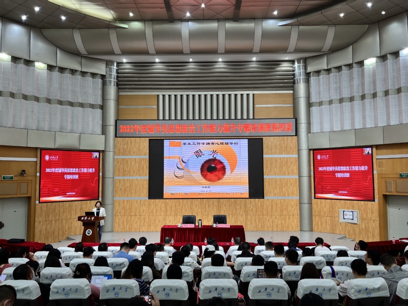 5月30日,西华大学2022年度辅导员思想政治工作能力提升专题培训班第四次培训在四教报告厅举行。培训班邀请吴薇莉老师以“学生工作中拥有心理辅导的眼光”为主题开展专题培训。研究生工作部副部长、党委学生工作部全体工作人员和各学院专职辅导员参加培训。学校党委副书记张力主持培训。