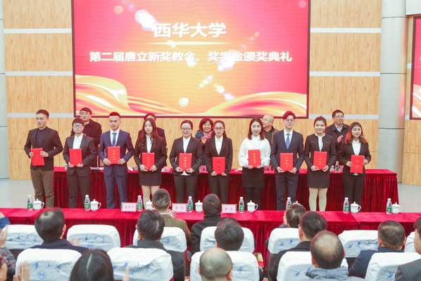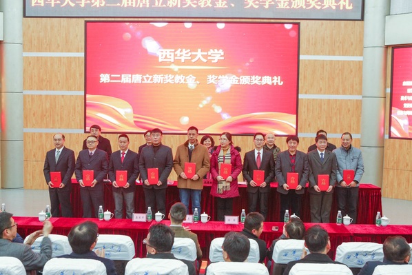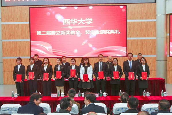 刘校长宣读了《关于表彰2017年西华大学唐立新奖教金获奖者的决定》以及《关于表彰2017年西华大学唐立新奖学金、唐立新优秀学生标兵奖学金、唐立新优秀学生干部奖学金获奖者的决定》。计算机与软件工程学院何明星等10人获得“西华大学唐立新优秀学者奖”,美术与设计学院周睿等10人获得“西华大学唐立新教学名师奖”,应用技术学院赵必鸣等10人获得 “西华大学唐立新优秀辅导员与行政管理人员奖”,后勤服务总公司江宏等10人获得“西华大学唐立新后勤服务杰出员工奖”,土木建筑与环境学院包海峰等30名同学获得“西华大学唐立新奖学金”,外国语学院杨露等10名同学获得“西华大学唐立新优秀学生标兵奖学金”,马克思主义学院蹇可佩等10名同学获得“西华大学唐立新优秀学生干部奖学金”。