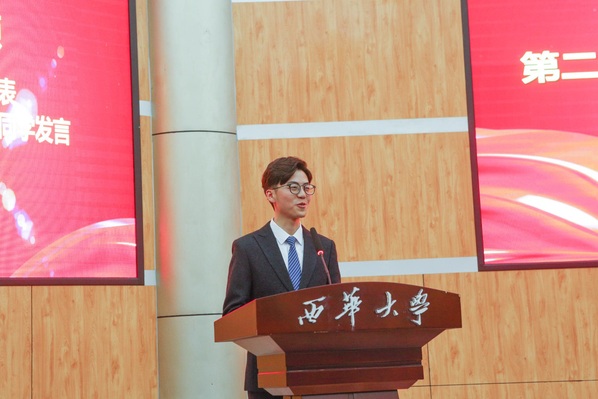 “唐立新奖学金”获奖代表、来自机械工程学院的李星代表所有获奖学生表达了对学校、老师以及一直以来关心教育事业的唐立新董事长的衷心感谢。他说到:“与优秀者同行,我们要做到‘见贤思齐焉,见不贤而内自省也’,加倍努力,遇见更好的自己。我们相聚于西华大学,相聚西新荟,应该牢记“求是,明德,卓越”的校训,并以之作为指引,不断努力谱写出人生道路上的华章。让唐奖理念“创新、学习、分享、互助、优秀”成为一种习惯,完善自我,互帮互助。无论是学习,还是工作,我们都要牢记西华校训、坚守唐奖理念,学习来自前辈精英的情怀与嘱托。用自己的努力创造价值,让所有关爱我们的领导和老师在未来一起见证我们的成长。”