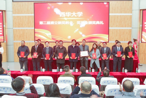 最后,新尚集团董事长唐立新对获奖的老师和同学表示热烈的祝贺,并对获奖师生取得的成绩表示充分的肯定。他指出,西华大学近年来发展迅速,人才培养成果显著,是一所榜样型的学校。唐立新董事长表示,唐立新奖学金致力于培养出新一代的卓越企业家、政治家、科学家等各界精英。今年是唐立新奖学金在西华大学设立的第二年,希望同学们珍惜唐立新奖学金平台带来的各种学习交流机会,共同努力,并期待更多的优秀学子加入到唐立新奖学金大家庭中,希望大家既能仰望星空,又能脚踏实地,在这里完成自己的梦想。