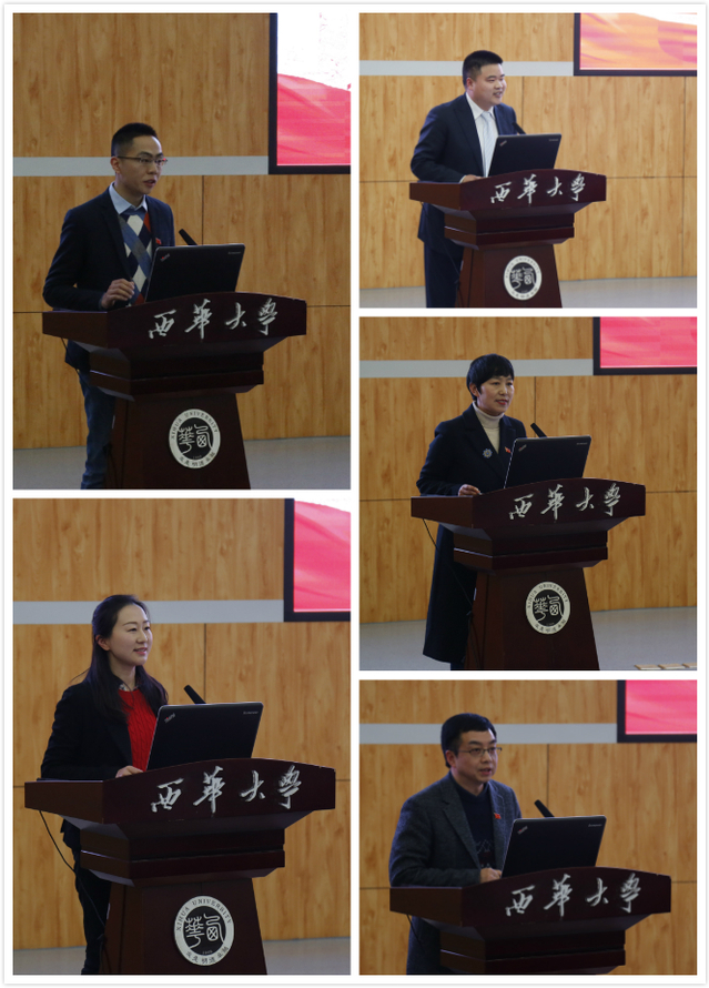 与会领导为报告团成员颁发了聘书后,五位优秀的辅导员相继登台向在座师生作了宣讲报告。西南石油大学饶盛老师以“勇做弄潮儿,不负新时代”为题、四川财经职业学院张邵希老师以“砥砺奋进,踏路前行”为题、电子科技大学江倩老师以“不忘初心,牢记使命,做新时代有为青年”为题、成都纺织高等专科学校太扎姆老师以“坚定文化自信,牢记时代使命”为题,我校人文学院徐攀老师以“不忘初心,牢记使命,青年人当自强”为题,结合本职工作和高校青年大学生思想政治工作实际,列举了大量生动事例和工作案例,从不同角度对十九大精神进行了系统梳理,使广大师生对十九大精神有了更深层次的理解。
