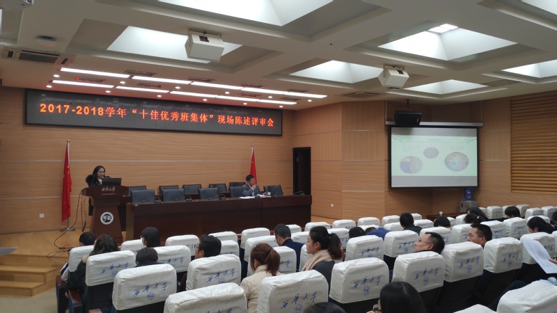 为深入贯彻落实党的十九大精神、全国高校思想政治工作会议精神,充分展示大学生群体积极健康的精神风貌,交流经验,宣传典型,11月27日下午,2017-2018学年西华大学“十佳优秀班集体”现场陈述评审会在行政楼一楼报告厅举行。各学院分管学生工作书记(副书记)、学生工作办主任、院团委书记、学生工作部(处)全体成员参与会议并担任评委。