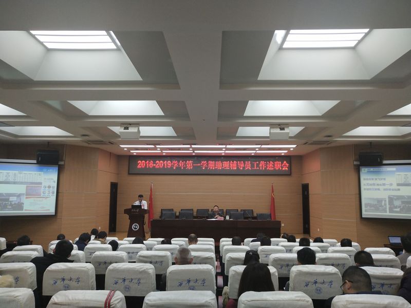 12月25日,2018—2019学年第一学期助理辅导员工作述职会在行政楼一楼报告厅召开。学工部全体人员、各学院分管学生工作书记(副书记)、学工办主任、分团委书记和2017年、2018年的助理辅导员参加本次会议。会议由学生工作部副部长王强主持。